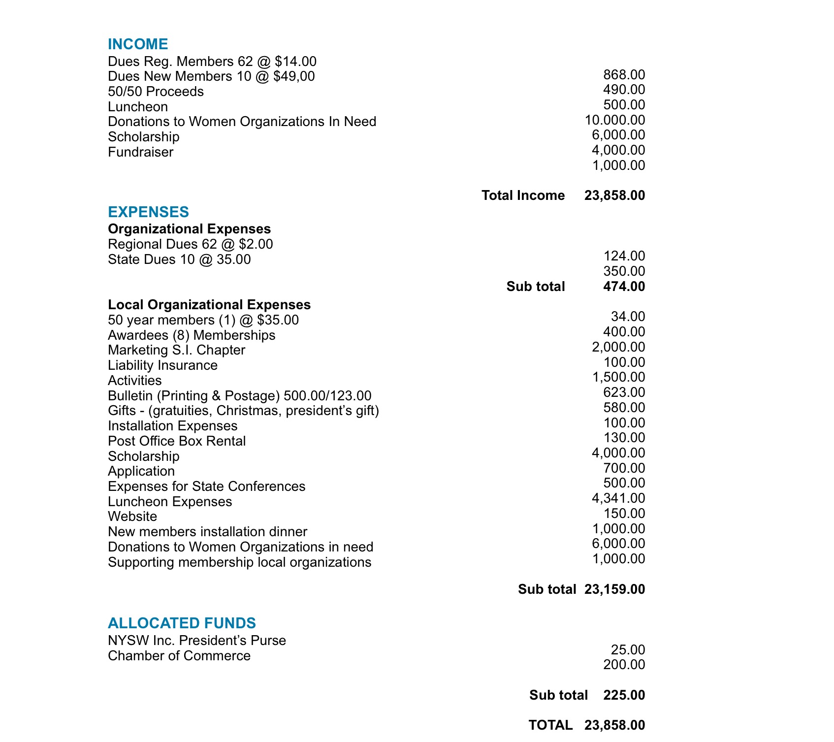 Proposed chapter budget for 2017-2018